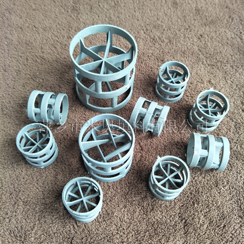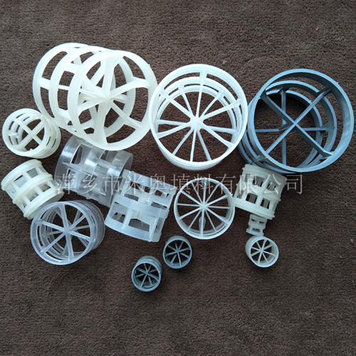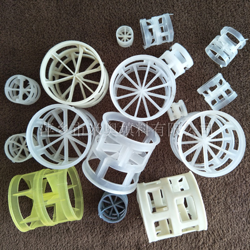 塑料鮑爾環(huán)是一種高徑相等的開孔環(huán)型填料,它是在拉西環(huán)填料的基礎(chǔ)上,在環(huán)壁上開出帶有窗孔,上下兩層窗孔的位置相反錯(cuò)開,一般開孔面積約占環(huán)壁總面積的30%左右。在未增加填料表面積的情況下,卻大大改善了填料層內(nèi)氣液兩相的流動(dòng)情況,提高了填料的流體力學(xué)與傳質(zhì)性能。其形狀結(jié)構(gòu)可分為內(nèi)筋為米子型,稱為塑料鮑爾環(huán)(米);內(nèi)筋為井字形,稱為塑料鮑爾環(huán)(井);內(nèi)筋為十字型,稱為塑料鮑爾環(huán)(十)。