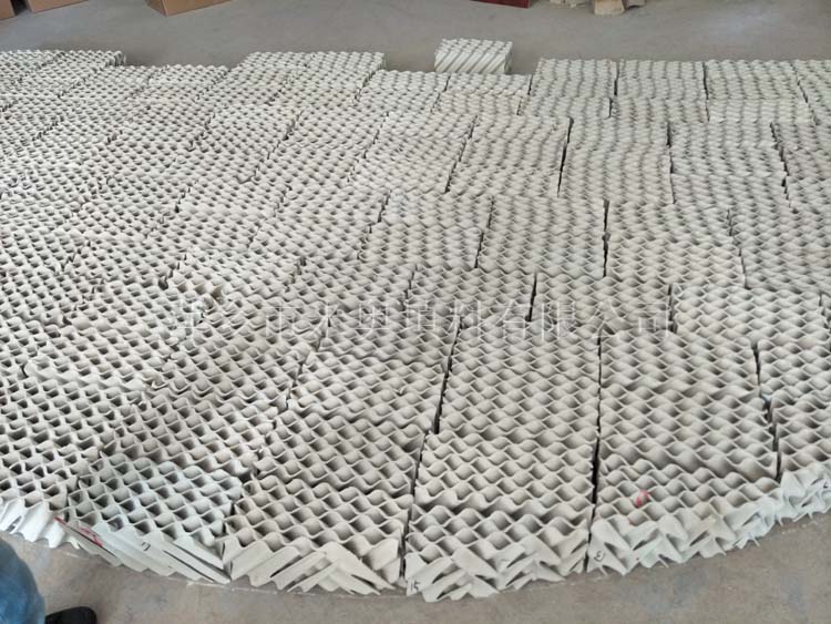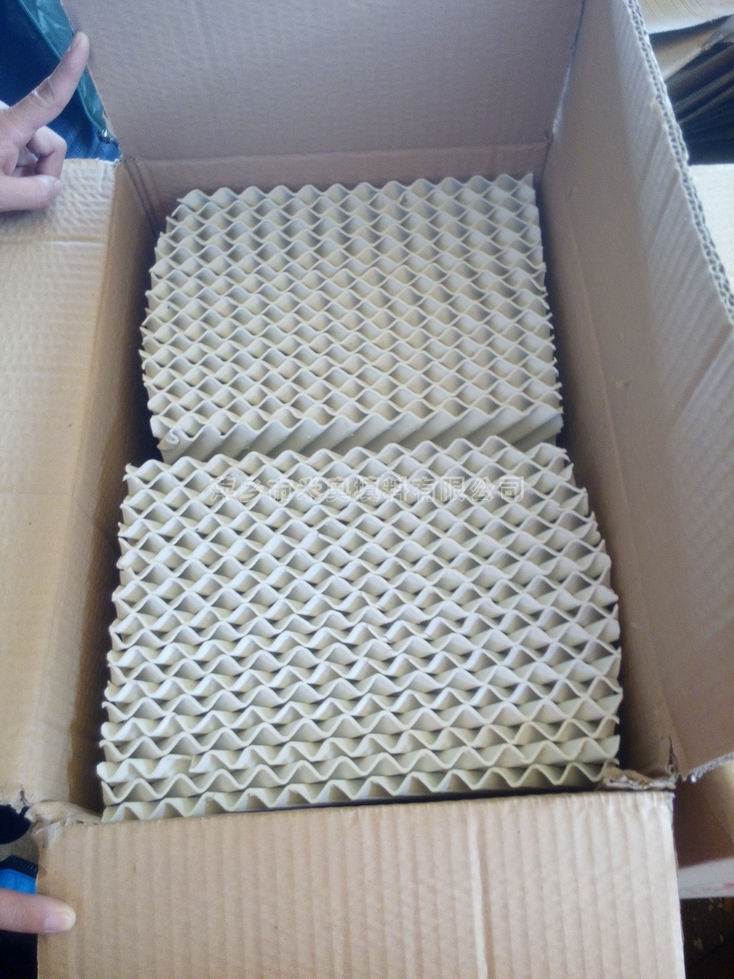 陶瓷規(guī)整波紋填料是一種新型規(guī)整填料,它是由許多具有相同幾何形狀的填料單元體組成。由于陶瓷獨特的結(jié)構(gòu),具有良好的親水性能,其表面可形成極薄的液膜的湍動及氣流的傾斜曲折通道能促進(jìn)氣流但又不阻擋氣流使陶瓷填料能與金屬填料相匹敵,而其耐腐蝕、耐高溫性能金屬填料卻無法相比。表面結(jié)構(gòu)有良好的濕潤性能,能使液體加快流動、使填料滯液量降至最低。從而降低了過熱、聚合和結(jié)焦的機會。