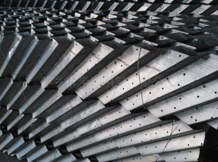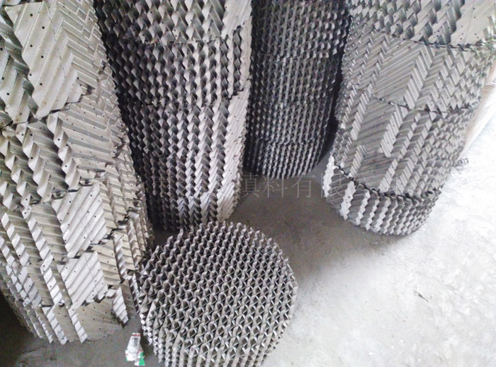 金屬波紋填料是用金屬薄板沖壓、拉伸成特定的壓延網(wǎng)片,表面成規(guī)則的菱形網(wǎng)孔、保持絲網(wǎng)波紋填料的幾何規(guī)則結(jié)構(gòu)沖壓成波紋片,再組成盤狀波紋規(guī)整填料。網(wǎng)孔波紋填料傳質(zhì)規(guī)律接近絲網(wǎng)波紋填料,每米填料的理論板數(shù)高于孔板波紋填料。由于網(wǎng)板可用各種金屬材料加工,選材面較絲網(wǎng)填料廣,因而耐腐蝕性能好。 規(guī)格參數(shù): |