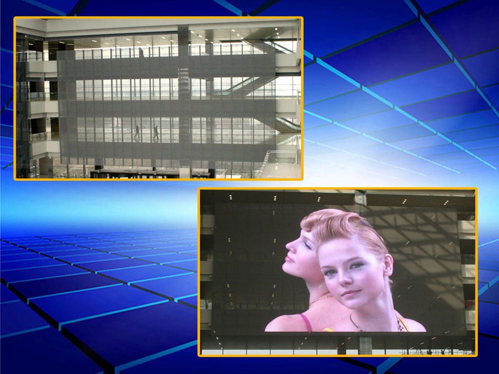 透明LED顯示屏側(cè)發(fā)光顯示,針對樓宇外墻、酒店、4S店等場合的廣告應(yīng)用,輕便結(jié)構(gòu)、可借用玻璃幕墻原有結(jié)構(gòu),高通透顯示,隱性安裝,遠距離觀看幕墻時,可以達到完美的通透顯示效果 ;融時尚性、藝術(shù)性于一體,成為城市一道亮麗的風(fēng)景線。
